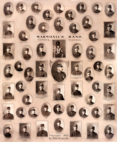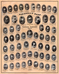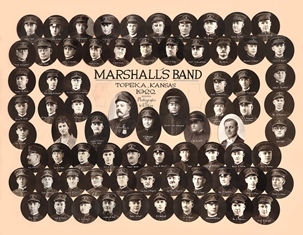 In 2019, Marshall's Band engaged a GoFundMe campaign to raise funds to preserve three large photo collages of former band members. In 2902, 1913, and 1922 large photo collages of the band members were taken and housed in the band's rehearsal hall and library. Included in the images are portraits of the founder of Marshall's Band, John B. Marshall, the founder of the Topeka Santa Fe Band, Clarence M. Whitlow, as well as many other early Topeka musicians.